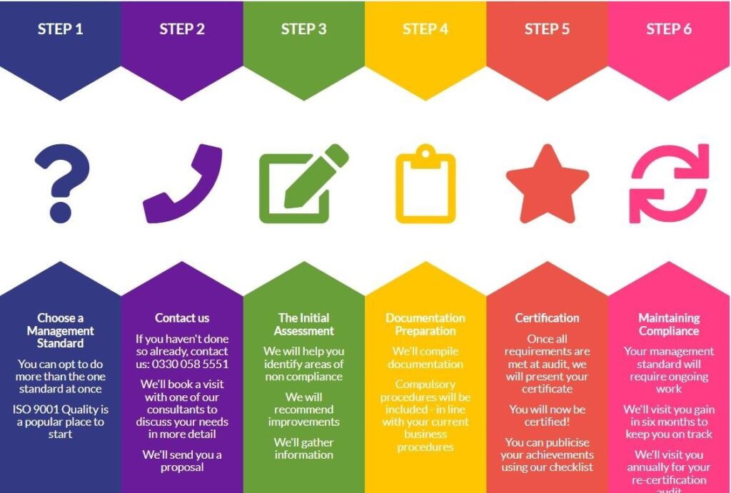 The systems are focused on continual improvement and we will continue to support you through the term of your contract by carrying out a six monthly review, ensuring you stay on track and are ready for re-certification each year.